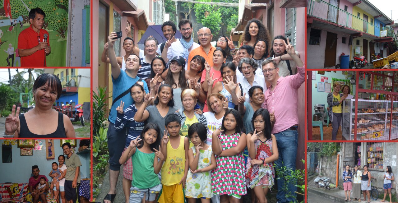 Au cœur de Manille, dans le quartier de Malaria, Bart Hangdaan nous accueille dans la communauté dont il est le responsable, un ensemble de maisons colorées pour 78 familles. De nombreux habitants sont là pour nous souhaiter la bienvenue, « mabuhay » : l’accueil est bien l’un des sept piliers de la vision de la communauté !