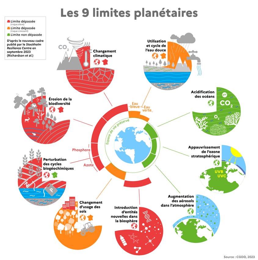 Description des 9 limites planétaires définies par le Stockholm Resilience Center