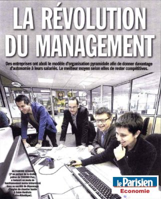 Une autre organisation du travail est possible ! C’était la Une du Parisien en ce 10 avril, avec des exemples d’entreprises ayant choisi de s’organiser de manière différente sur la base de petites équipes autonomes encourageant l’initiative des collaborateurs et le partage des prises de décisions, avec des performances notables !