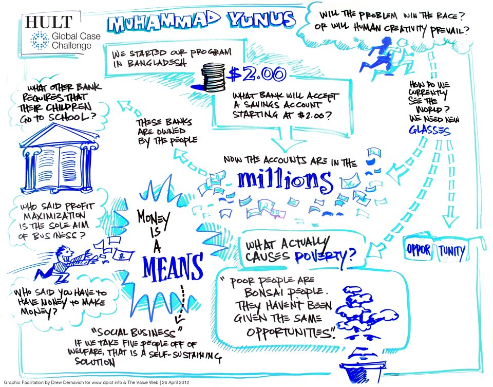 Graphical recording from Yunus’ speech at the Hult Global Case Challenge